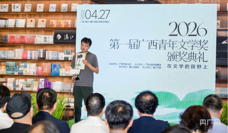 央廣網南寧4月28日消息(記者梁瑜琳)4月27日,第一屆廣西青年文學獎頒獎典禮在南寧漓江書院未來方舟店成功舉辦。本次頒獎典禮以“在文學的田野上播種”為主題,匯聚區內外文壇名家、領導嘉賓、青年作家及媒體代表,共同見證廣西青年文學力量榮耀時刻。