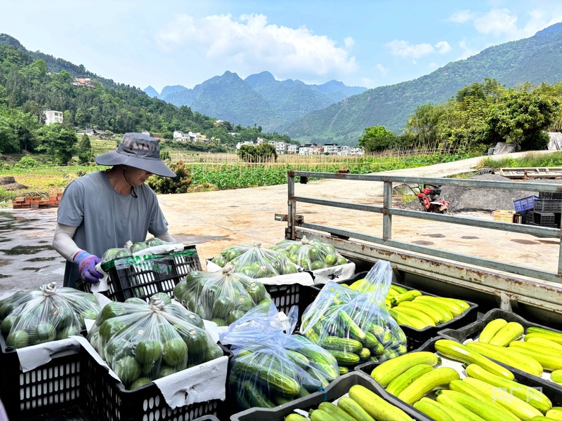 “低海拔地區熱,適合種植喜熱的豆類、瓜類。等這邊的蔬菜采收完畢,高山上的蔬菜也正好進入采收期。”基地老板葉作輝一邊查看打包情況,一邊笑著解釋。