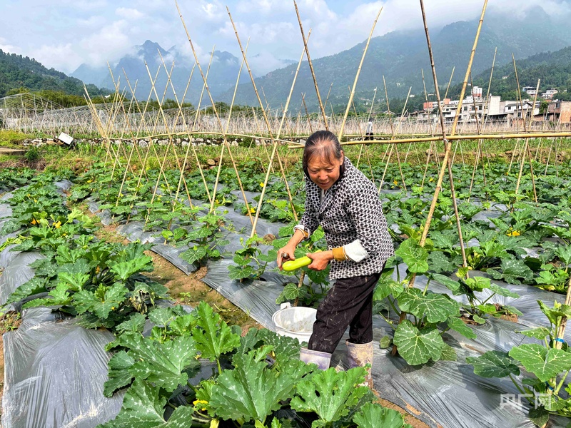 村民正在采摘西葫蘆(央廣網發 刁苓沙 攝)