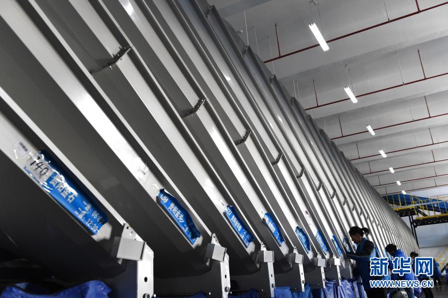 貴州快遞物流集聚區:智慧物流助力“雙十一”,11月10日,在貴州省龍里縣,中通公司員工整理按照目的地分揀的包裹。新華社記者 戴天放 攝 11月10日,在貴州省龍里縣,中通公司員工將快遞翻至正面供系統掃描分揀。新華社記者 戴天放 攝 11月10日,在貴州省龍里縣,中通公司員工將快遞翻至正面供系統掃描分揀。