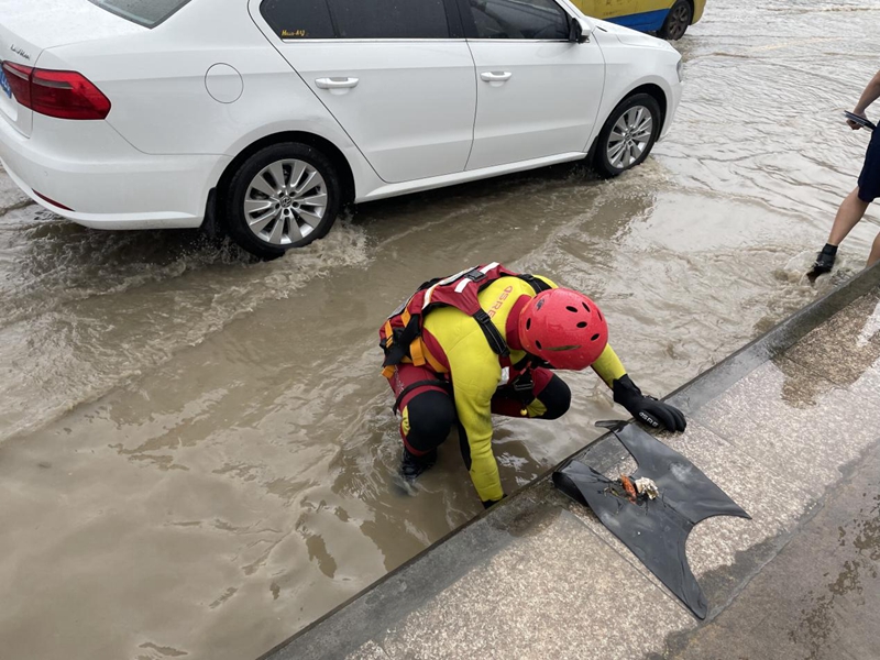 強(qiáng)降雨產(chǎn)生的垃圾雜物將思南縣一橋排水口堵塞,導(dǎo)致積水過多,嚴(yán)重影響交通。消防指戰(zhàn)員快速搜尋排水口,清理堵塞垃圾,經(jīng)過45分鐘的救援,所有排水口疏通完畢,成功排除橋面積水;在思南烏江大道,由于積水嚴(yán)重,消防指戰(zhàn)員到場后打開下水道井蓋,利用城市排水系統(tǒng)進(jìn)行排水,同時(shí)利用架設(shè)手抬機(jī)動泵,進(jìn)行城市排澇。目前,排澇工作仍在進(jìn)行中。