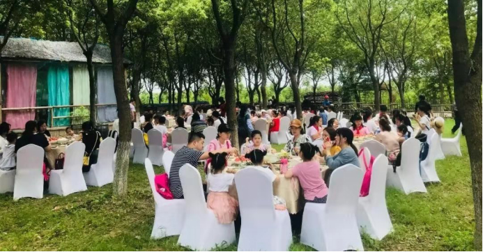 前方,風格旖旎,蟬鳴蛙叫,樹木森森,一條小河蜿蜒而流,此處為“放肆之所”——摸魚釣蝦池。現場歡聲笑語不斷,朋友們滿載而歸,載著滿滿的喜悅。