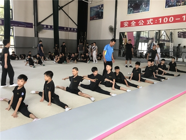 雜技練功設備齊全的一號和二號練功廳,是每天孩子們待得最多的地方。清晨5:20——7:00,孩子們排成一列列,在毯子上訓練劈叉、靠頂、空翻等基本功,早飯過后便開始一天的節目訓練。練功期間他們有的表情淡定,有的咬緊牙關暗自忍耐,有的張開雙臂一臉愜意,有的臉頰緋紅汗珠滾滾……晚上7:40孩子們用熱水洗去一天的疲憊進入夢鄉。每個孩子初來之時,身體素質并不相同,然而他們無一例外地堅持了下來。在決心與意志力的支撐下,身體韌性、力量得到提升,漸漸地對越來越多的雜技動作信手拈來。