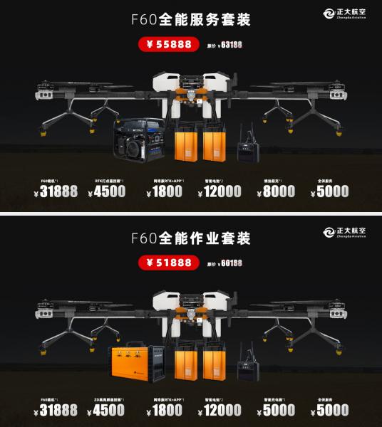 其中,正大航空F60農(nóng)業(yè)無人機的重磅亮相,將是市面上綜合性能最強大的植保無人機之一,F60全能套裝售價為51888元,超能售價55888元;另一款產(chǎn)品F4打點測澮無人機,價格更顯平民化,該產(chǎn)品套裝僅為5188元。