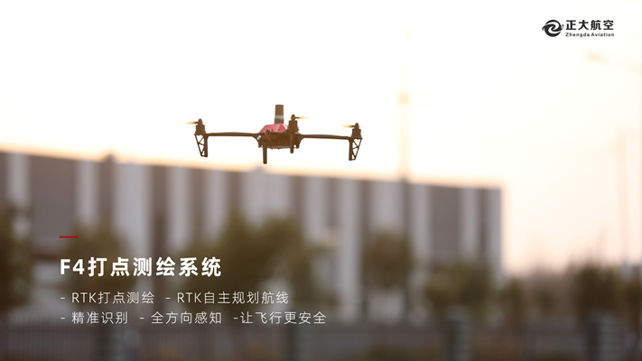 正大航空F4打點測繪無人機:搭載雙頻RTK厘米級定位飛機適合更大的地圖視野可控制飛行器實現(xiàn)智能航點規(guī)劃,自動執(zhí)行,自動跟隨,一鍵回家,大幅提供專業(yè)領域任務的工作效率。