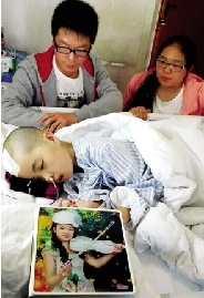 央廣網河南分網消息 昨日下午,在鄭大一附院2號樓8層神經外科二病區18病房,43歲的汝州市大峪鎮同豐村村民王杰愁容滿面。女兒王璐陽13歲,是大峪一中七(2)班學生,去年12月底,不幸被確定患上腦瘤。