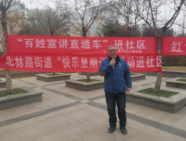 為了豐富居民群眾的業余文化生活,宣傳黨和政府的最新政策和文件精神,11月30日下午,匯城社區黨總支在北環小游園開展了“百姓宣講直通車”進社區暨紅色文藝輕騎兵、快樂星期天活動,附近居民群眾觀看了演出。