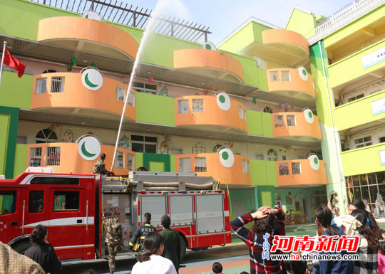 洛陽(yáng)西工600名幼兒現(xiàn)場(chǎng)體驗(yàn)火場(chǎng)逃生 張左宏/攝