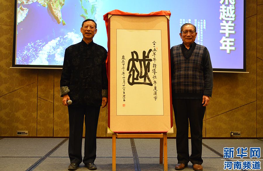 中國著名文字學(xué)家白雙法先生與原河南省文聯(lián)副主席,中國著名書法家王鴻玉先生共同發(fā)布2015羊年指導(dǎo)性年度漢字“越”。