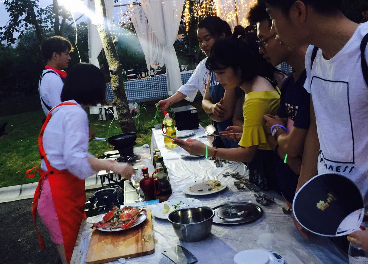 事實上,這是hello kitchen 社交廚房聯合蝸牛房車營地、杭州戀愛計所發起的“共享七夕,共享美食”嘉年華活動的廚藝體驗秀現場。以“共享”之名,本次七夕嘉年華,活動主辦方為年輕人社交呈現了一個特別的溝通平臺。