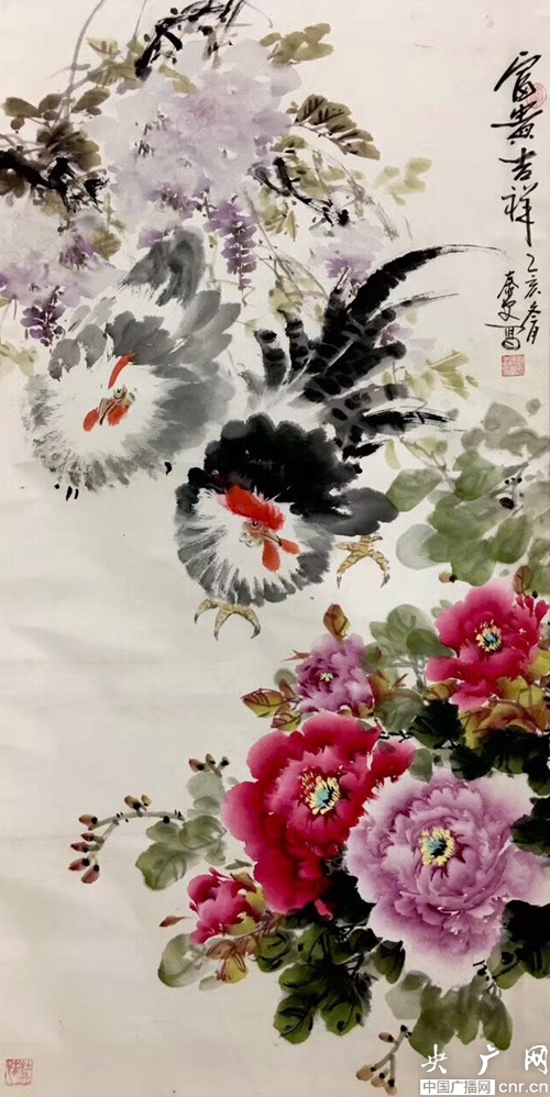 平樂(lè)村村民、牡丹書畫院院長(zhǎng)郭泰森:“洛陽(yáng)市第一屆牡丹文化節(jié)時(shí),他和哥哥郭泰安到王城公園看牡丹,回來(lái)以后,郭泰安開始畫牡丹,并把牡丹畫拿出去銷售,結(jié)果還真賣出去了,當(dāng)時(shí)比較稀罕。”