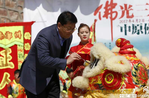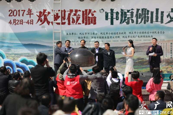 央廣網河南分網4月4日消息 傳承感恩文化,激活鄉村經濟,中原佛山文化廟會于4月2日在全國美麗鄉村鞏義市水道口村盛大開幕,廟會會期三天。出席開幕式的領導與嘉賓有:鞏義市市委常委、統戰部部長賀傳偉;鞏義市市委常委、政法委書記、公安局局長陳兆甲,鞏義市副市長劉軍杰,鞏義市文化廣電新聞出版局副局長張永濤,鞏義市文物和旅游局局長秦文坦,大河網總經理高亢,鞏義市小關鎮黨委書記白東升,鞏義市小關鎮鎮長許火炎,鞏義市河洛商會秘書長薄磊,河南省中原文化保護開發有限公司總經理張子明,原味清心養生齋總經理張佳飛,水道口村黨支部書記陳占定,水道口村村委主任張志偉等。