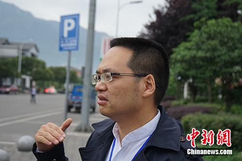 漢旺鎮(zhèn)黨委副書記王強接受記者采訪。中新網記者 宋宇晟 攝