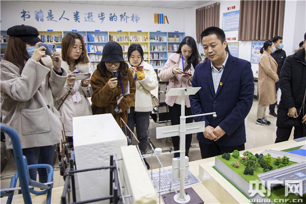 馮立雷向采訪團介紹“SW”施工技術模型(央廣網記者 王勇生攝)