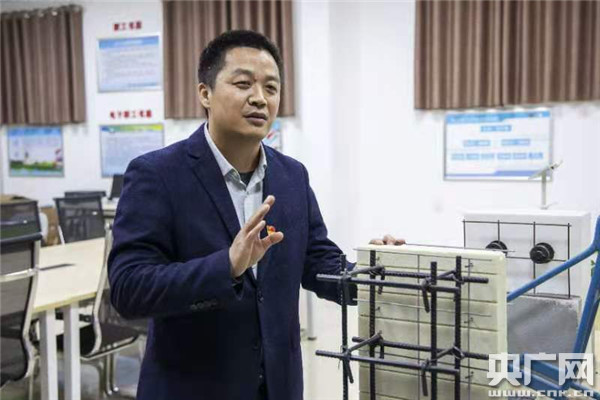 馮立雷介紹創新施工技術模型(央廣網記者 王勇生攝)