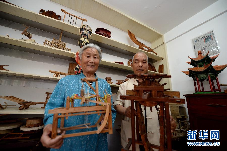 央廣網河南分網消息 在陜西省西安市的臨潼區,為了將自己記憶中原汁原味的農耕生產生活得以還原,兩位年過七旬的老者不約而同地將他們的夕陽時光花在了老式農業用具上。 73歲的老人李樹森和老伴王月琴純手工制作了包括獨輪車、釤麥桿子、織布機、水車等六十余種微縮老式農具。70歲的退休醫生唐遷收集了農耕生產生活用具包括硬轱轆大車、羅面柜、紡線車等200多個種類近千件,足跡遍及陜西的周至、三原、藍田、眉縣等地。他們的愿望都是辦一個農耕文化展覽館,來為這些老農具安個家,也讓今后的年輕人能夠了解農耕文明的生產生活方式。新華社記者 李一博 攝
