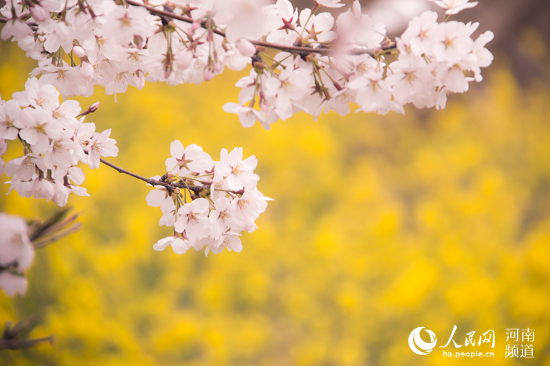 漫天櫻舞,紛紛揚揚;古今穿越,再續“櫻”緣。3月18日,河南滎陽第二屆黃河櫻花節在古柏渡豐樂櫻花園正式開幕,迎來近十萬人游園賞櫻。 -