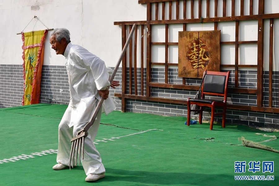 在河南省濮陽市華龍區岳村鄉東北莊村一個雜技小院,東北莊著名雜技流派“喬家班”的第六代傳人、年近八旬的喬金生用杈把表演雜技(11月21日攝)。 中原地區是中國雜技的主要起源地之一,中原雜技首推河南濮陽,濮陽雜技源自東北莊。東北莊同河北吳橋并稱為“中國雜技南北故里”。 如今的東北莊,村里以雜技為主題的文化墻到處都是,雜技小院每天熱鬧非凡,明清小巷依然有不少孩童在練習,專業雜技學校迎來四海學員……雜技,讓古老的東北莊煥發生機和活力,也在改變著這里人民的生活。 新華社記者馮大鵬攝 -