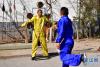 在河南省濮陽市華龍區岳村鄉東北莊村一個雜技小院,一位藝人表演硬氣功“劈磚”(11月22日攝)。 中原地區是中國雜技的主要起源地之一,中原雜技首推河南濮陽,濮陽雜技源自東北莊。東北莊同河北吳橋并稱為“中國雜技南北故里”。 如今的東北莊,村里以雜技為主題的文化墻到處都是,雜技小院每天熱鬧非凡,明清小巷依然有不少孩童在練習,專業雜技學校迎來四海學員……雜技,讓古老的東北莊煥發生機和活力,也在改變著這里人民的生活。 新華社記者馮大鵬攝 -