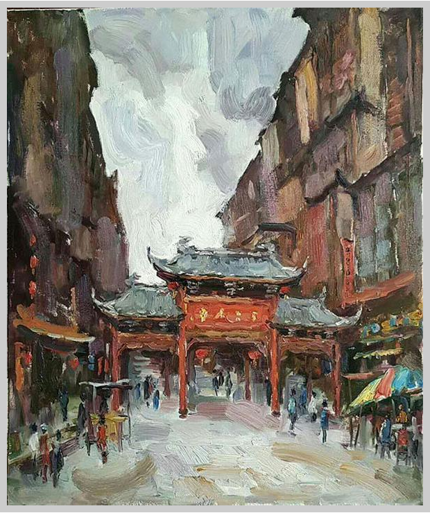 茅臺鎮(zhèn)是第二次來,第一次是走馬觀花的參觀,這一次得益于貴州旅游在線的邀請,能深入其中,深表感謝。茅臺歷來都是貴州的經(jīng)濟強鎮(zhèn),來了以后名不虛傳,滿城飄香,建筑整潔,街道干凈。雖然此次采風時間不長,但時間很緊湊。今天寫生,強光日曬下,每個畫家都非常盡職盡興,每人起碼都畫了兩幅寫生作品。身在其中,我也被這樣的氛圍所感動。
