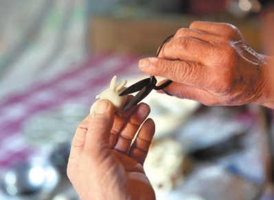 2月7日,靈寶市大王鎮西路井村農民正在做花饃。村民們聚在一起和面蒸花饃,喜迎新年,祈盼來年事事如意。孫猛 攝