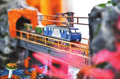 紙短情長,站臺、站房、天橋、鐵軌、蒸汽機車、電力機車、貨運列車、龍門吊……11月24日,走進洛陽車站貨運員孫玉明的家中,一件件逼真的鐵路模型擺在桌子和窗臺上,讓人仿佛進入了“鐵路王國”。為了給新學員做業務培訓,他用廢紙箱板、泡沫板、掉落的樹枝等材料,按比例做成模型給學員講解。