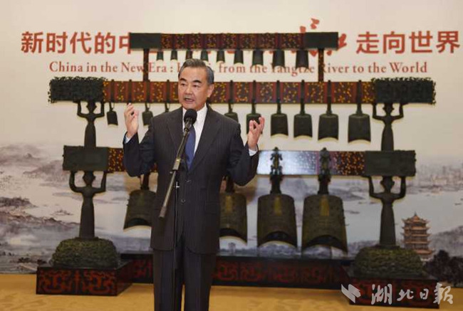 王毅表示,歷史上的湖北,曾是中華文明的重要發源地。近代以來的湖北,成為中國革命與建設的重要先行者。新時代的湖北,正在打造成中部地區發展的新高地。今天,湖北積極參與“一帶一路”合作,“江海直達”航線向東連接太平洋,中歐班列向西直通歐洲,客運航線直飛全球四大洲。我相信,已經邁入新時代的湖北,必將從長江走向世界,成為中國全方位對外開放的新窗口。我要推薦各位使節多去湖北參觀訪問,登黃鶴樓,飲長江水,品武昌魚,感悟荊楚文化,共商合作大計。