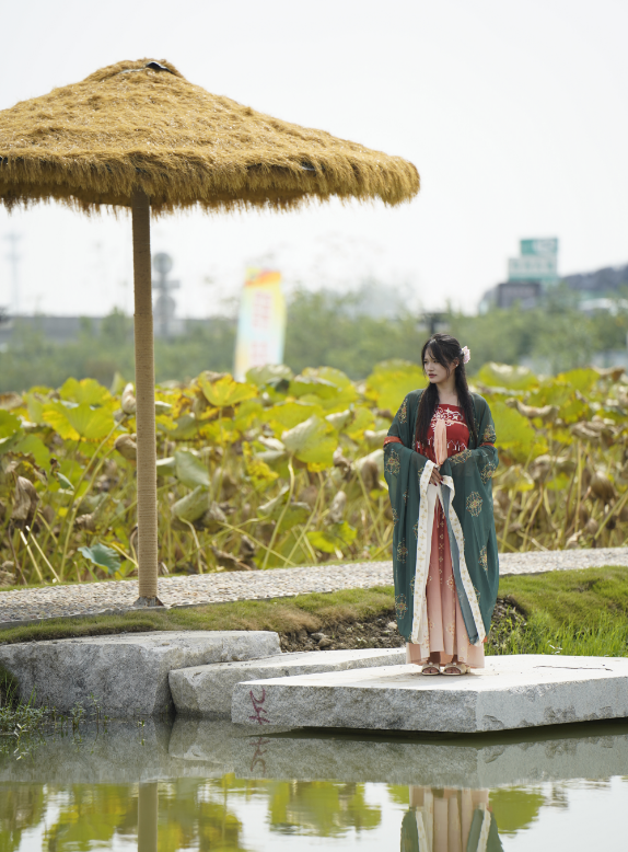 身穿漢服穿梭于稻荷鱔園,感受漢服之美、沔陽之美。