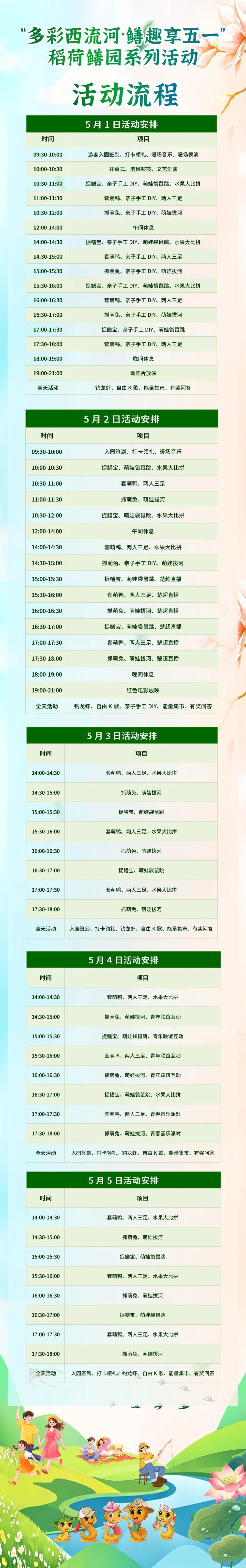 游戲規則:提供簡易釣具釣小龍蝦,園區內指定區域垂釣,收獲可自行帶走。