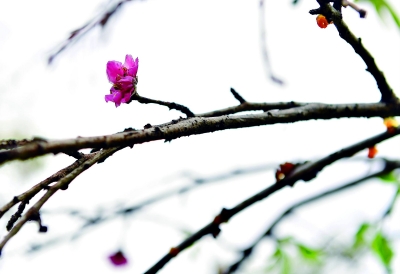 25日,長江日報記者在金銀湖濕地公園看到,園內的梅樹、李樹、桃樹、櫻花樹、海棠樹等都存在少量開花的現象。