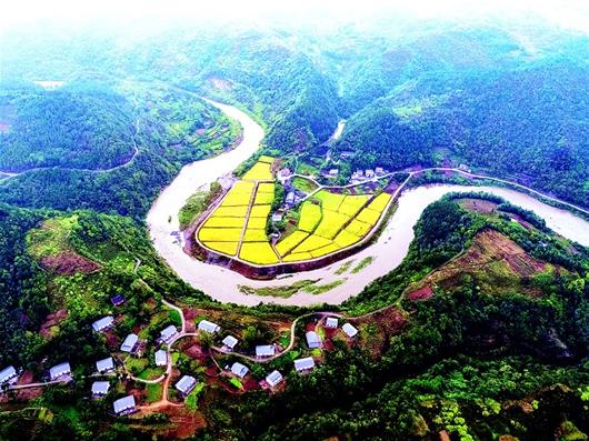 10月9日,竹山縣擂鼓鎮棗園村2組,水泥路修進深山,道路兩旁新房整齊有序,田園里稻谷金黃,豐收景象盡收眼底。公路的完善調動了群眾生產積極性,他們紛紛在房前屋后種植水稻、茶葉、林果等高效產業,發展旅游經濟。