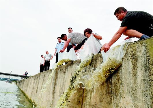 7月17日,在檢察官和漁政執(zhí)法人員的見證下,由犯罪嫌疑人馬某出資購買的30萬尾魚苗投放到襄陽市漢江張灣段水域。