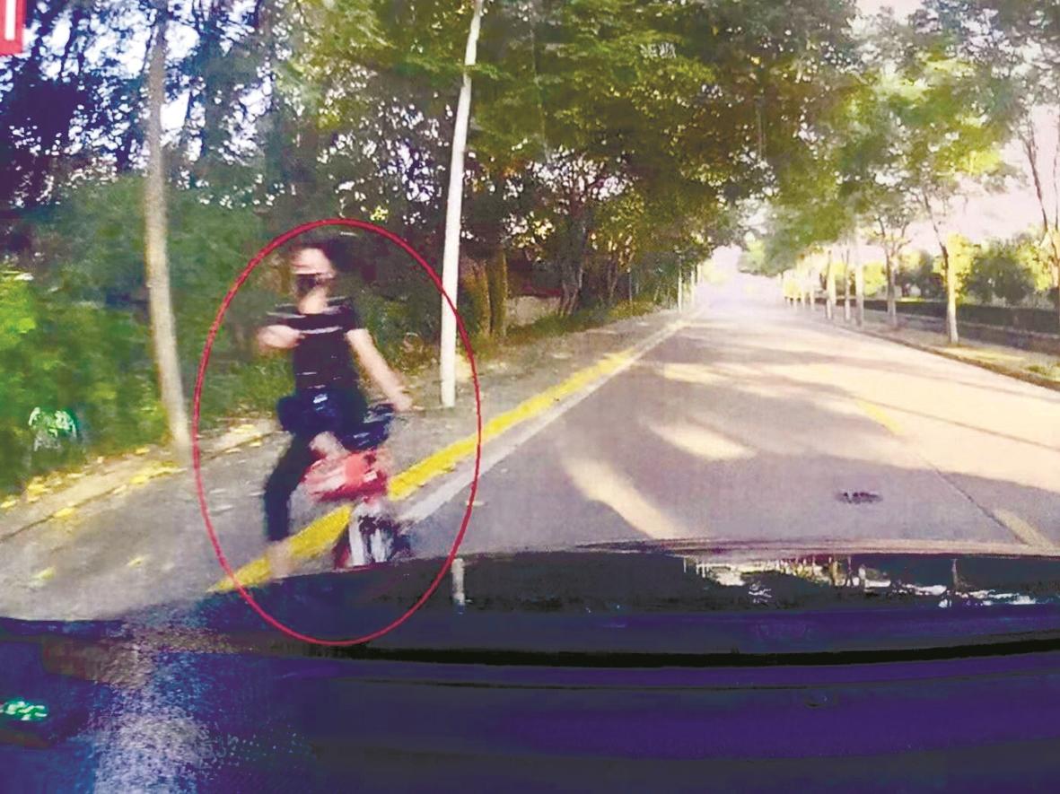 學(xué)校路段道路很窄,僅僅只有兩車道寬,孫先生非常小心地行駛至左側(cè)車道,略微提速超車。就在這時(shí),一名戴著口罩的黑衣男子騎著共享單車迎面而來(lái),與孫先生的汽車發(fā)生輕微碰撞。孫先生隨即下車查看情況,只見騎車男子倒地不起,地上還有兩部屏幕破裂的蘋果手機(jī),黑色轎車則突然加速駛離現(xiàn)場(chǎng)。