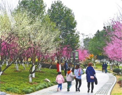 2月8日,沙湖公園的一片梅林已悄然盛開,正值最佳觀賞期。這片梅林以紅色的宮粉梅為主,滿樹繁花嬌艷欲滴,如紅云繚繞。間植數棵白色的江梅和淡綠色的綠萼梅,將紅梅襯托得愈加濃郁。