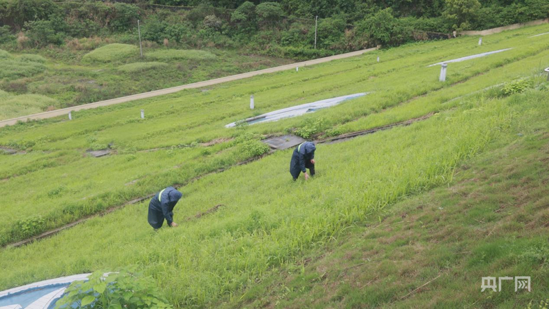 4月21日,水庫管理所巡查小組排查大壩滲漏、壩體裂縫、雜草雜物堵塞等隱患(央廣網發 廖輝煌 攝)
