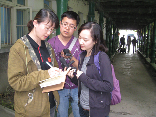 記者:各位聽眾,我是華夏之聲記者孫洋,走進四川地震重災區汶川水墨鎮,到處是殘垣斷壁······(現場搶險聲)