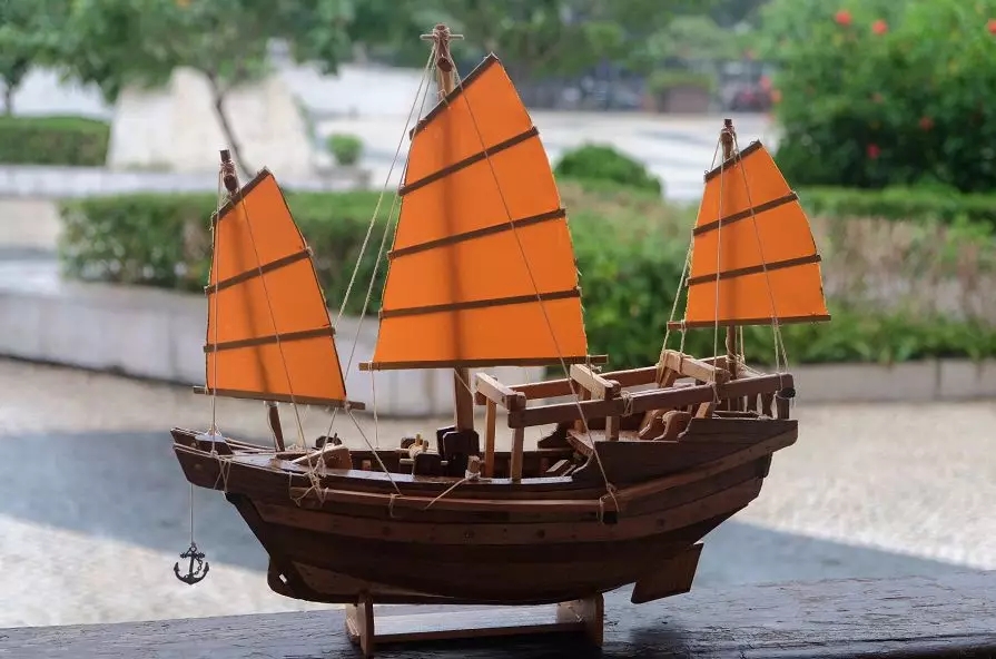 一艘小小的三桅帆船,麻雀雖小五臟俱全,里面有廁所、儲蓄淡水區、廁所、廚房區,還科學地設置了欄桿供漁民曬咸魚,滿足漁民出海捕魚一切的生活需求。