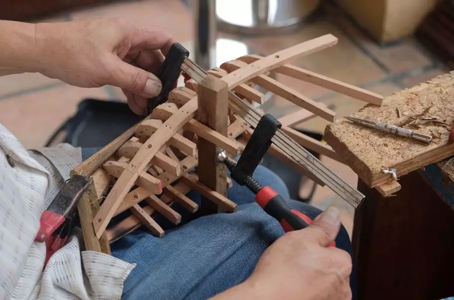 如今澳門造船業式微,時代使然,人縱無奈,仍可堅持。資深造船工匠溫泉以大船細作的模式,運用其記憶、經驗和手藝,制作出多艘逼真帆船模型,展現瀕臨消失的造船工藝。