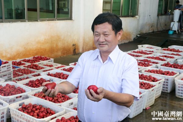 臺農(nóng)黃益豐正在展示蓮霧。(中國臺灣網(wǎng) 尹賽楠 攝)