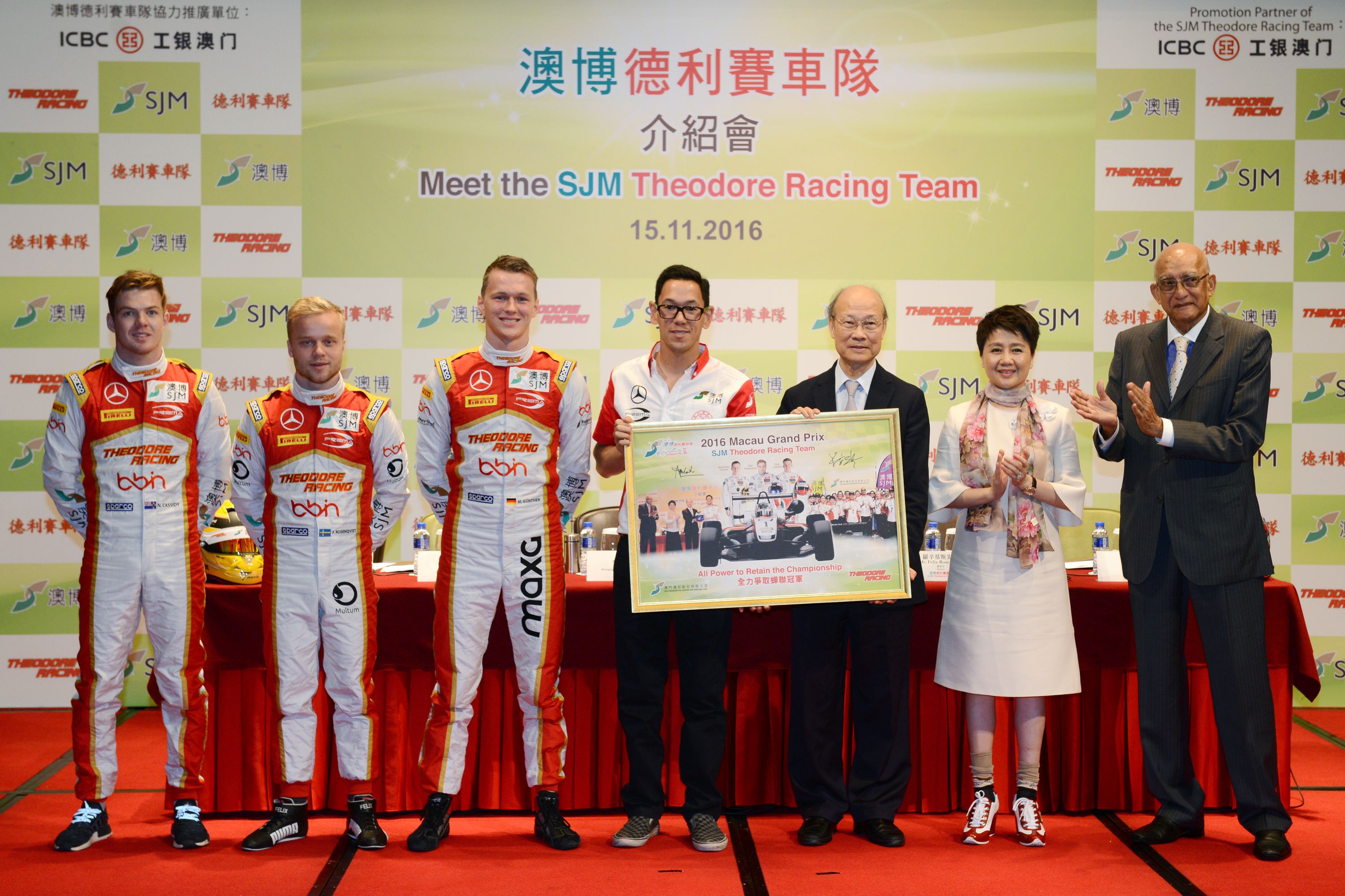 出席介紹會的包括澳博董事局主席蘇樹輝博士、常務董事兼行政總監梁安琪女士、車隊總監小葉德利先生、三位賽車手羅辛基斯先生、根拿先生以及卡斯德先生。