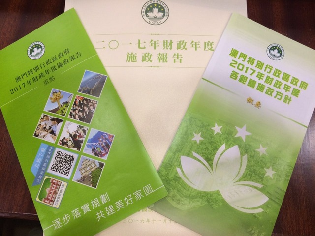 澳門特別行政區(qū)政府二零一七年財政年度施政報告》文本及相關(guān)小冊子