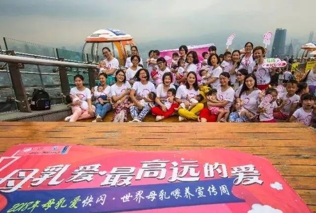 2018年世界母乳喂養宣傳周期間,近20位母親在廣州塔呼吁大眾關注母乳喂養