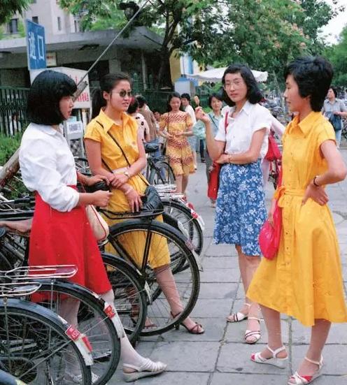 1986年,北京街頭女子爭穿鮮艷的裙子。(圖片來源:新華社)