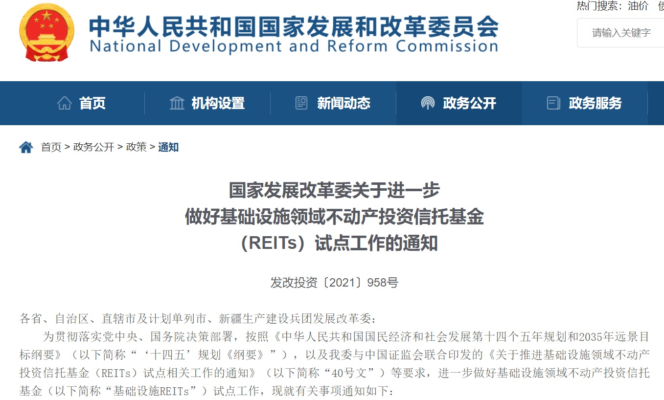央廣網北京7月3日消息(記者 楊崇)日前,國家發展和改革委印發《關于進一步做好基礎設施領域不動產投資信托基金(REITs)試點工作的通知》(以下簡稱“通知”)。