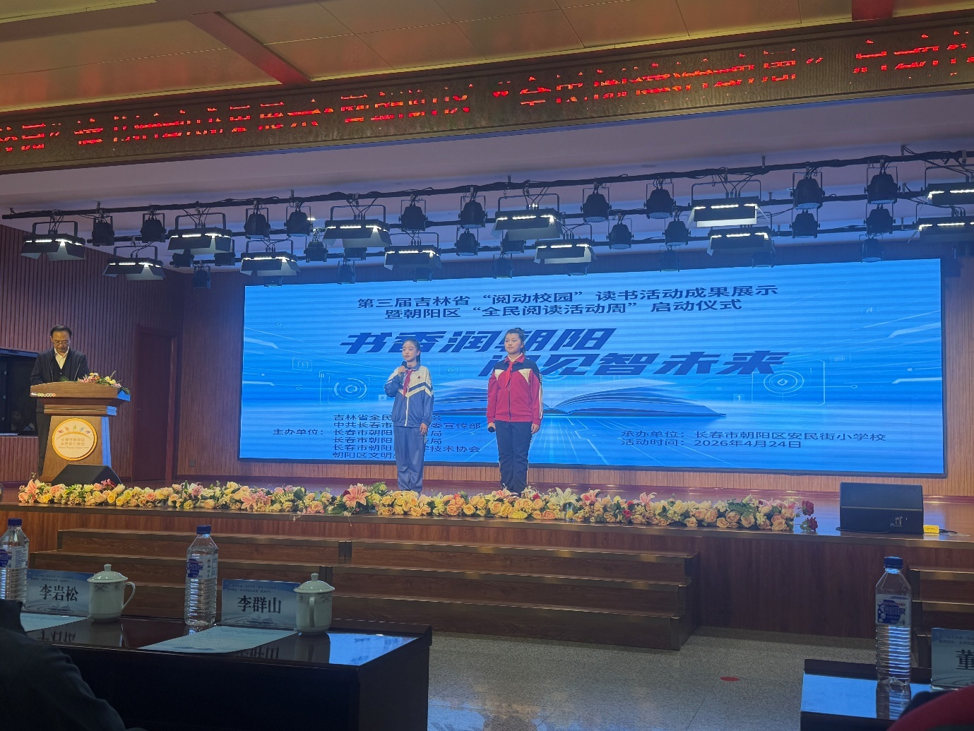 央廣網長春4月25日消息(記者郭明彤)4月24日下午,第三屆吉林省“閱動校園”讀書活動成果展示暨朝陽區“全民閱讀活動周”啟動儀式在長春市朝陽區安民街小學校舉行。本次活動以“書香潤朝陽 閱見智未來”為主題,緊扣全國全民閱讀活動周與“4·23世界讀書日”重要節點,全面展示校園閱讀成果,正式拉開朝陽區2026年全民閱讀活動周序幕。