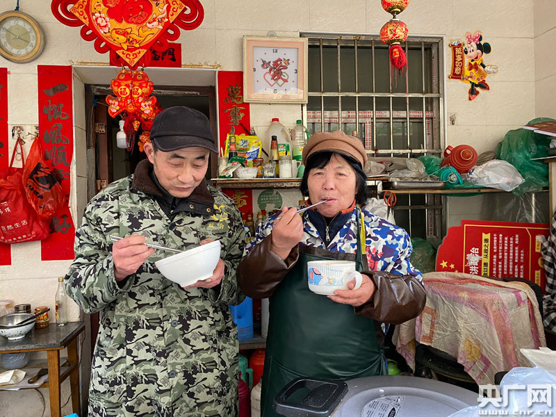 萬佐成夫婦錯過飯點才吃上午飯(央廣網記者 謝元森 攝)