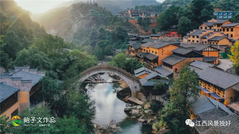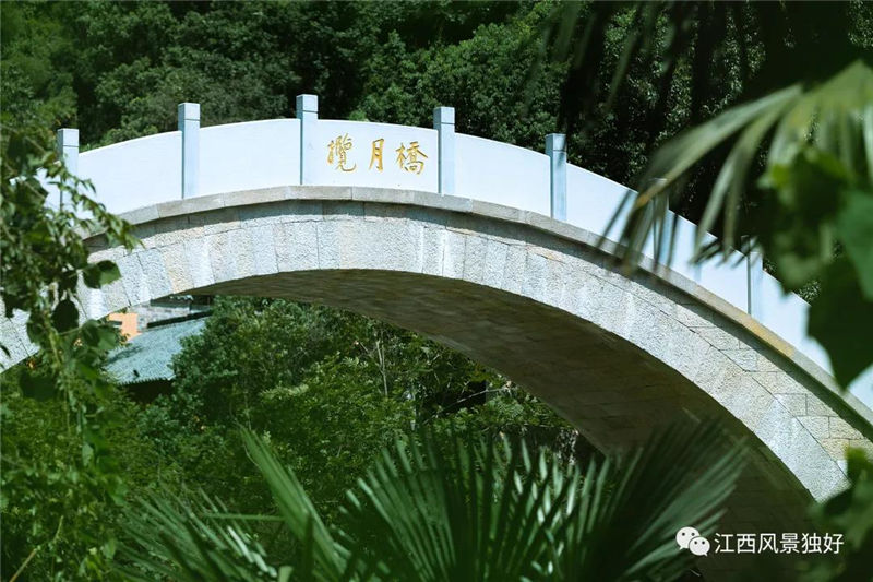 說到河與水,自然也就離不開橋。在景區(qū)入口處,有一座紅色單拱鋼結(jié)構(gòu)大橋,拱橋坡度較小,游客走在上面如同“平步青云”,其橋名也正是“青云橋”。穿過青云橋,來到一座風(fēng)雨廊橋,廊橋采用的是抬梁式架構(gòu),整個結(jié)構(gòu)和工藝富有江西地方特色。峽谷中段,有一座高空鋼架橋橫跨峽谷上空,中間懸有“望仙谷”三個大字,橋雖顯簡單但似乎又帶點粗獷美。在眾橋中,若說誰最美,攬月橋當(dāng)仁不讓。它是一座石拱橋,取材于當(dāng)?shù)氐幕◢弾r,由百層方石堆砌而成,遠(yuǎn)看就像一輪彎彎的新月。圓月夜里,圓圓的拱橋可將溪谷中的月亮倒影一攬而入,這也是為何取名“攬月橋”的緣故。