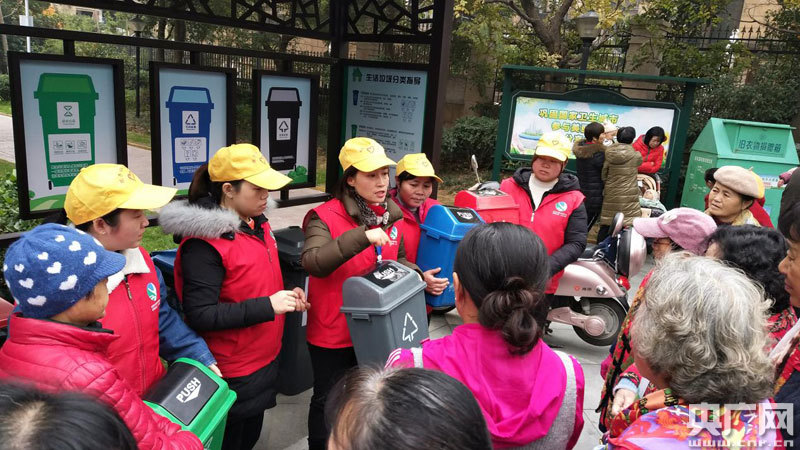 社區(qū)工作人員現(xiàn)場講解垃圾分類相關知識(央廣網(wǎng)發(fā) 通訊員供圖)