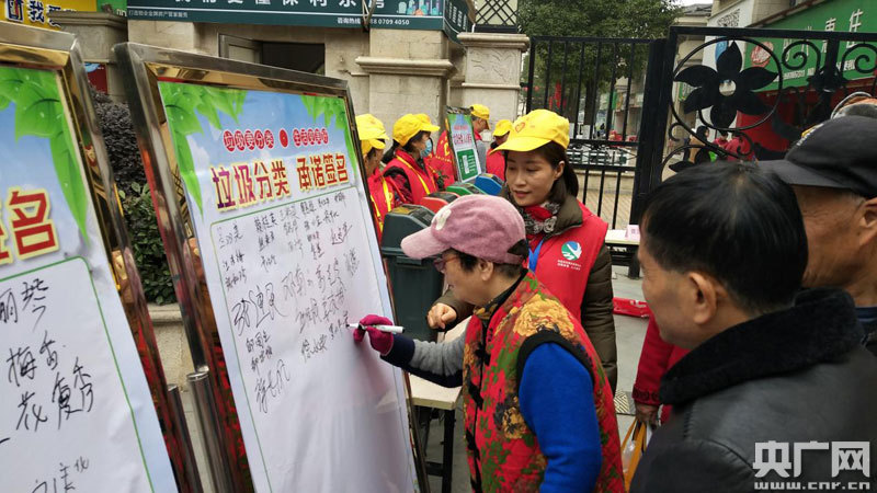 居民們在承諾簽名板簽字承諾(央廣網(wǎng)發(fā) 通訊員供圖)