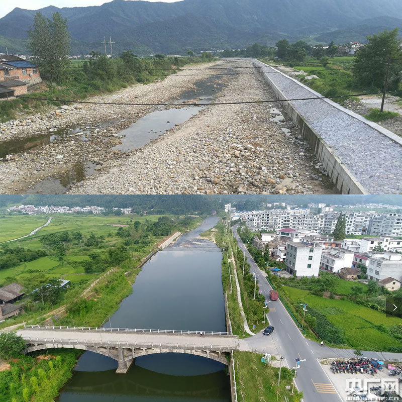 打擊非法采砂前、后河道狀況對比圖(央廣網發 通訊員供圖)